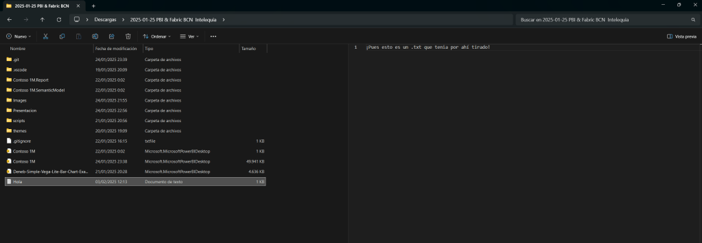 - Seleccionar un archivo, te lo abrirá en una pestaña aparte para que lo puedas editar, o incluso previsualizar dependiendo del tipo de archivo que sea (no me intenteis abrir un .pbix porque os llevareis una decepcion).